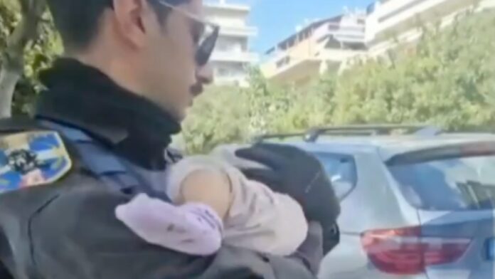 Η συγκινητική στιγμή που ένας αστυνομικός κρατά στην αγκαλιά του ένα μωρό, το οποίο είχε εντοπιστεί παρατημένο δίπλα σε κάδο σκουπιδιών στον Άλιμο, ήρθε στο φως μέσα από ένα βίντεο ντοκουμέντο που προκαλεί βαθιά συγκίνηση..