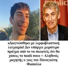 Ο Γιάννης Φασούλας, γιος του Παναγιώτη Φασούλα, πέρασε μια συγκλονιστική δοκιμασία με τον καρκίνο, όμως κατάφερε να βγει νικητής. Σήμερα είναι 23 χρονών και μοιάζει εντυπωσιακά στον πατέρα του, όχι μόνο εμφανισιακά αλλά και στη δύναμη ψυχής.