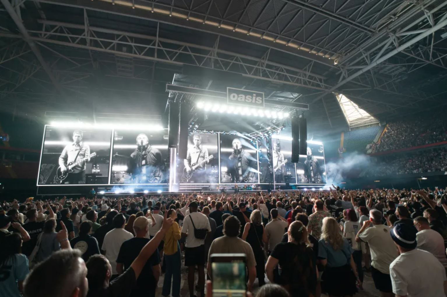 Η στιγμή που τα δύο αδέρφια εμφανίστηκαν επί σκηνής πιασμένα χέρι-χέρι στο κατάμεστο Principality Stadium στο Κάρντιφ, σήμανε το τέλος μιας μακράς αναμονής 16 ετών. «Είναι καλό που επιστρέψαμε», τραγούδησε λίγο αργότερα ο Λίαμ, ανοίγοντας τη βραδιά με το «Hello» — ένα τραγούδι που πλέον φάνηκε πιο επίκαιρο από ποτέ.