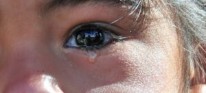 Τα χείλη της έτρεμαν, τα μάτια της βουρκωμένα.